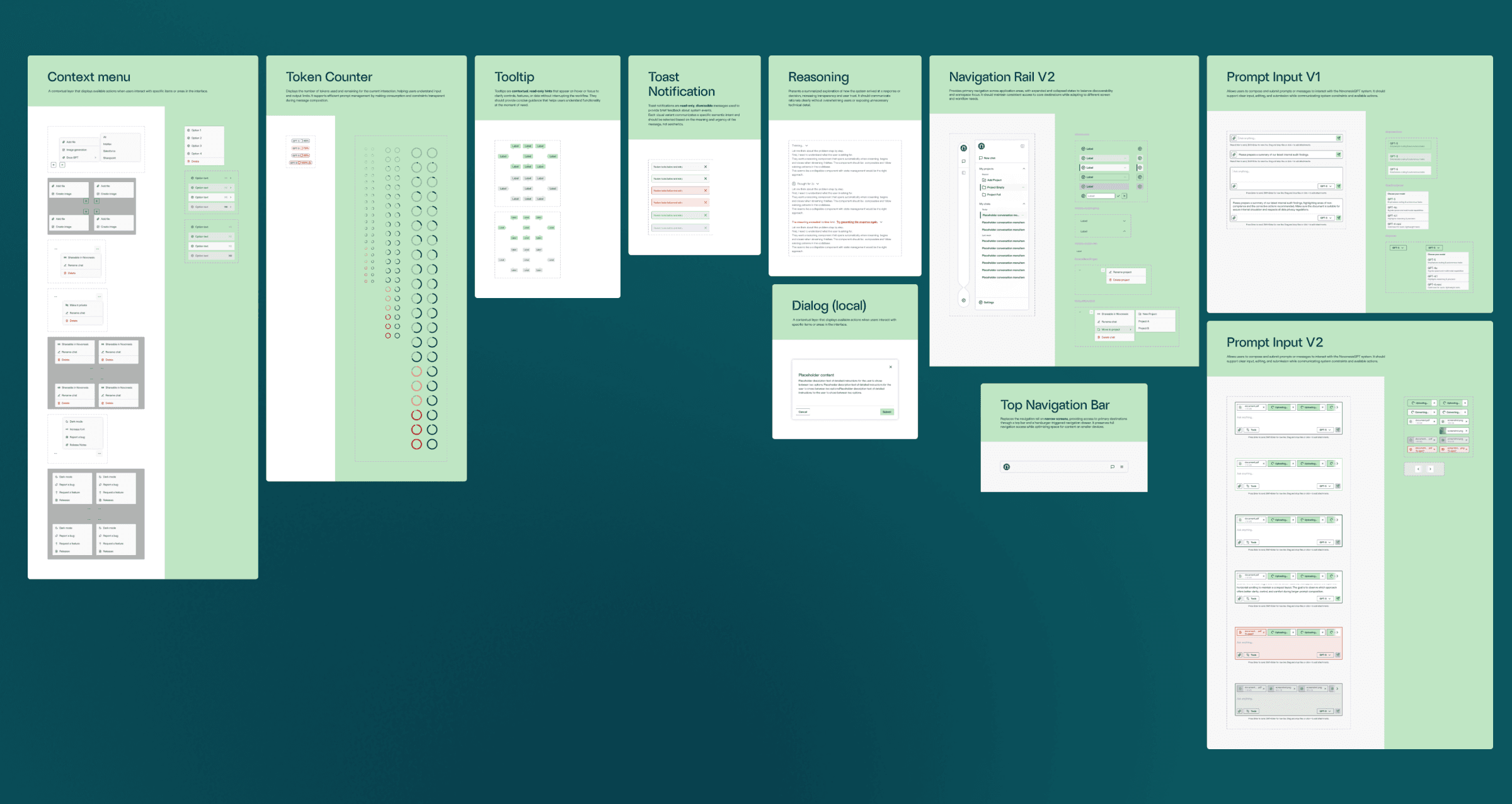 The corporate design system had no prompt input, no token counter, no inline governance alerts. Before Beta, I built a local component library as the foundation for experience consistency and compliance control. I chose to design each component to answer two questions simultaneously: what does it do functionally, and what does it communicate about accountability. The token counter is not a usage meter; it is a transparency mechanism. The inline alerts distinguish between guidance before action and information after it. These decisions were made before a single user interaction, and they were validated by how the platform behaved once people started using it.
