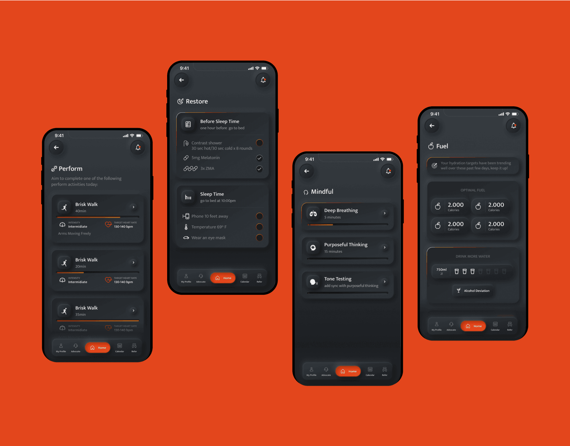 The Precision Health App was conceptualized to tackle a significant gap in the market—providing precise, personalized, and efficient health and fitness strategies. Aimed at professionals, executives, and professionals aged 45 to 65, the app sought to eliminate the overwhelm and guesswork typically associated with achieving optimal health and fitness goals. The challenge was to create a user-friendly, data-driven platform that catered to various health aspects such as Performance, Nutrition, Rest, and Mindfulness.